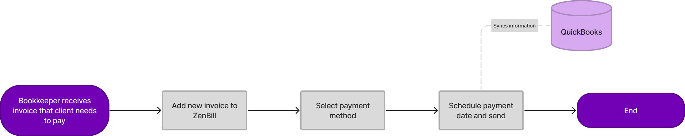 For our first iteration, we prioritized the core of the QuickBooks integration, which is syncing information between QuickBooks and ZenBill. This is essential for bookkeepers to meet their clients’ payment deadlines, so we tried to make the syncing process as seamless as possible.